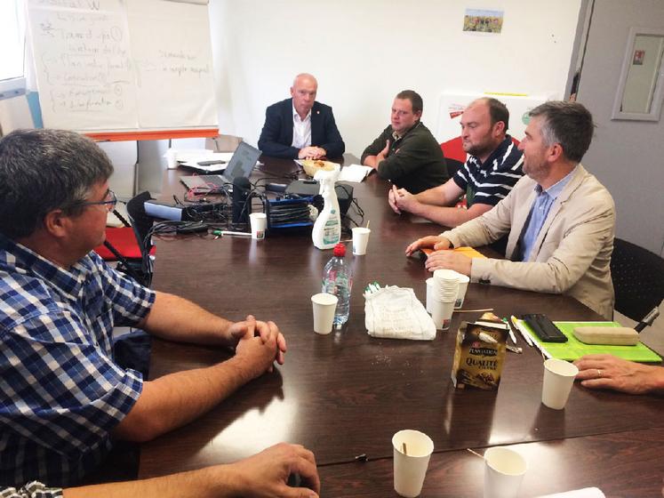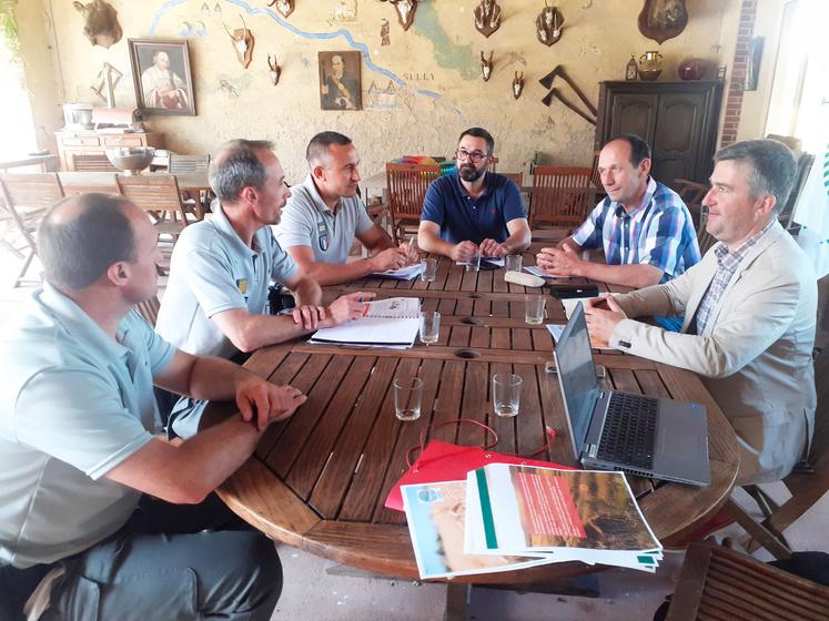 Échanges constructifs entre l’OFB et la FNSEA 45. Mardi 20 juin, le directeur de l’Office français de la biodiversité (OFB) du Loiret, Jean Mendy, et deux de ses collaborateurs, Jules Cugnart et Pascal Bourand, ont été invités à venir échanger sur l’exploitation de Nicolas Digard, à Saint-Gondon, en présence de Sébastien Méry, président de la FNSEA 45, et de Jean-Louis Lefaucheux, son secrétaire général. Il s’agissait d’échanger sur la mise en parallèle des missions de l’OFB avec les contraintes agricoles.