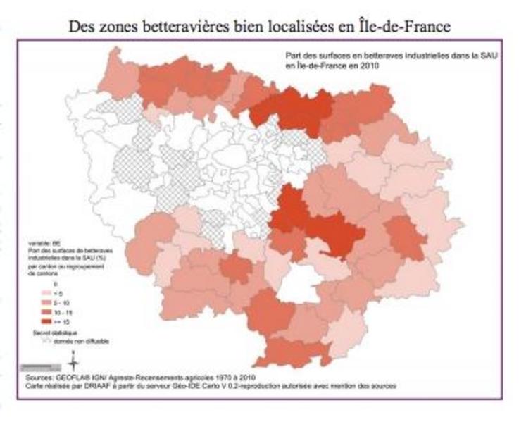 Agreste note que l’absence de sucreries dans certaines zones explique le peu de betteraves cultivées, notamment dans les Yvelines.