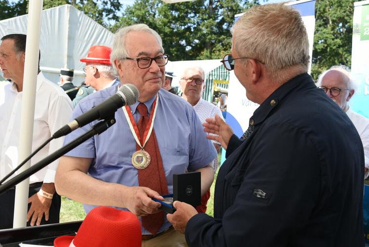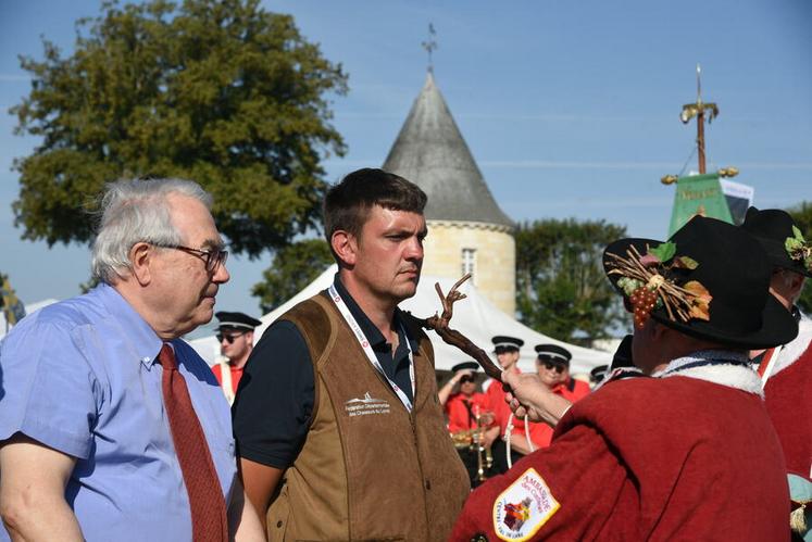 François Bonneau a découvert les différents villages, notamment celui de la chasse, aux côtés d'Alain Machenin, président de la Fédération départementale des chasseurs.