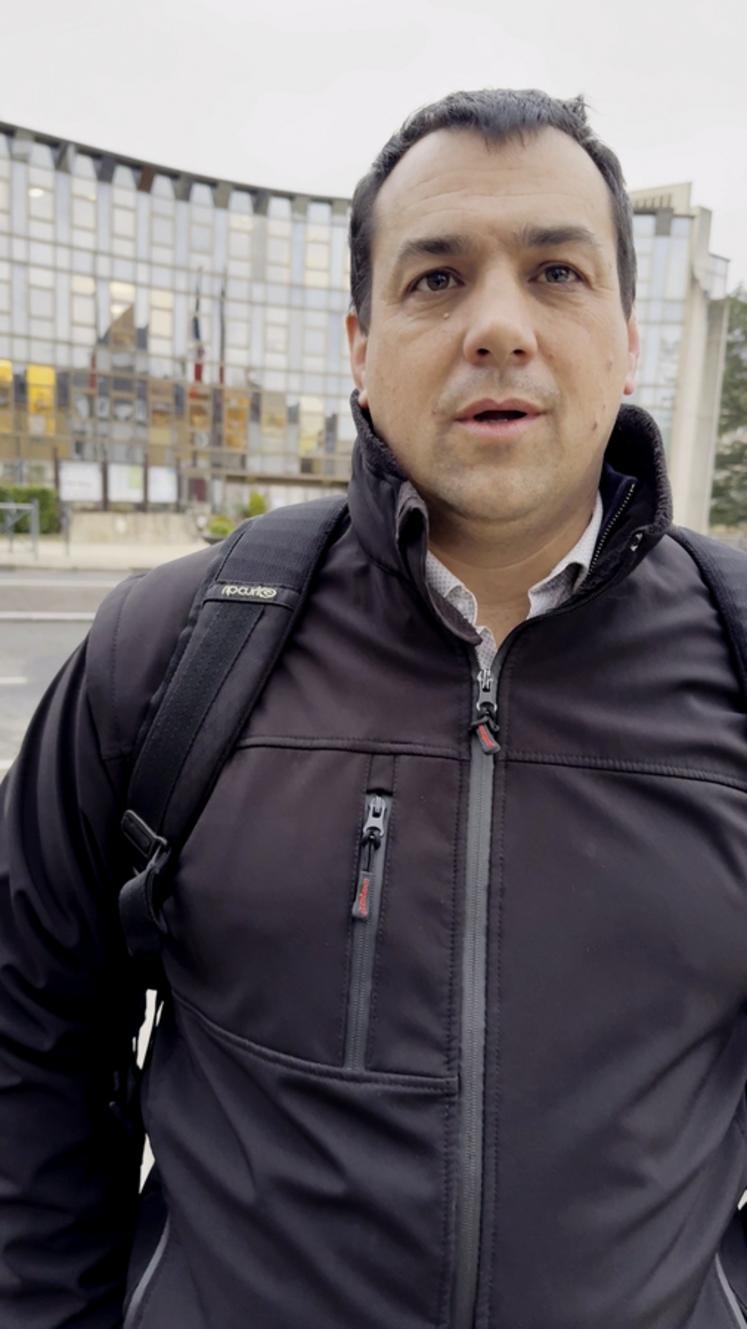 Tête de liste FNSEA-Jeunes agriculteurs d'Eure-et-Loir pour les élections des membres de la chambre d'Agriculture, Yohann Serreau réagit à l'issue de la procédure de dépouillement le 6 février à Chartres.