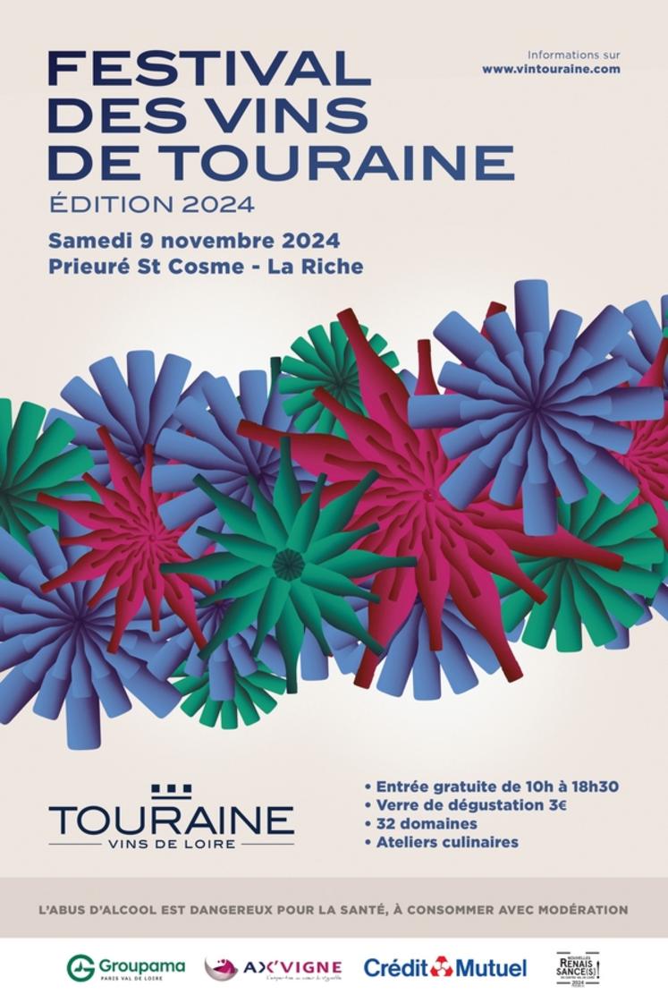 La 6e édition du Festival des vins de Touraine aura lieu samedi 9 novembre de 10 heures à 18 h 30 au Prieuré de Saint-Cosme à La Riche, près de Tours (Indre-et-Loire), en présence d'une dizaine de vignerons de Loir-et-Cher. Cette année, le village des vignerons rassemblera trente-trois domaines et caves viticoles au sein du réfectoire du prieuré Saint-Cosme. Durant le festival, des ateliers culinaires auront lieu à partir de 13 heures avec des ateliers fromage, cuisine et charcuterie. Pour ces ateliers, deux sommeliers, experts en vins de Touraine, Anne Ruilier et Henri Chapon, accompagneront les chefs et producteurs afin de mettre en avant des accords mets et vins.