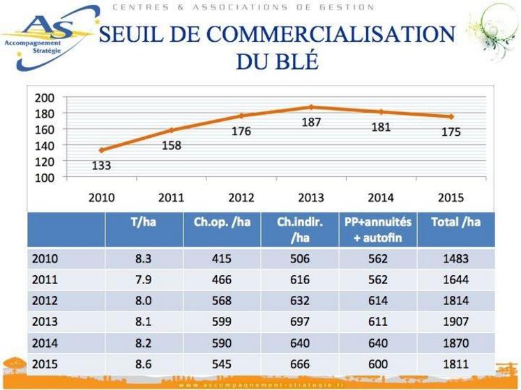 Notons que le seuil de commercialisation du blé est de 175 euros/tonne.