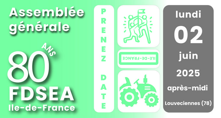L'assemblée générale de la FDSEA Île-de-France aura lieu lundi 2 juin à Louveciennes (Yvelines). Elle marquera 80 ans d’engagement au service des agriculteurs d’Île-de-France.