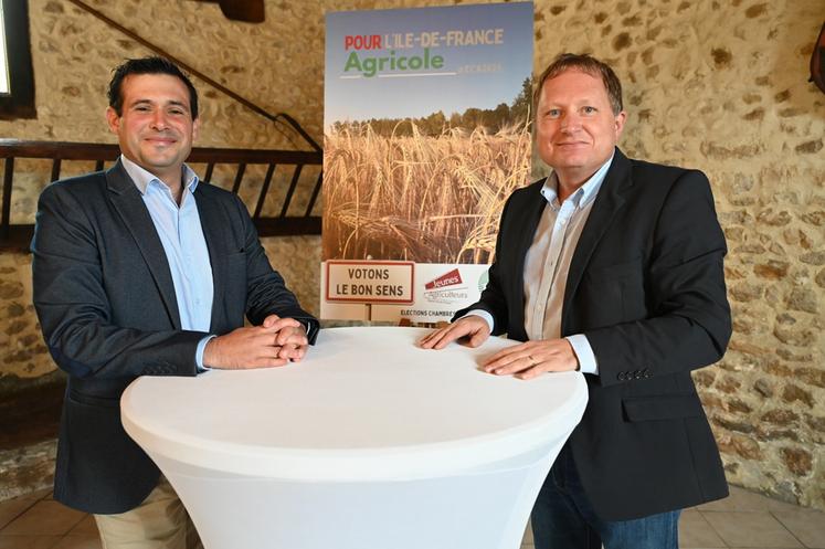 Damien Greffin et Clément Torpier, têtes de liste FRSEA/JA, présentent en cinq axes leur projet stratégique pour la chambre d'Agriculture de région Île-de-France.