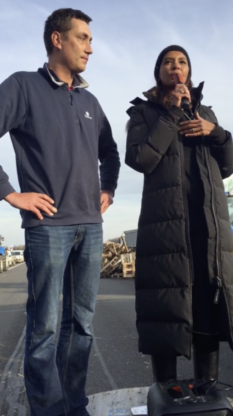 L’animatrice de L’Amour est dans le pré a apporté son plein et entier soutien aux « agriculteurs qui se battent pour qu'on continue à avoir une souveraineté, à manger des choses de qualité (…) Il faut que nous aussi on vous dise qu'on vous aime et qu'on vous remercie », a-t-elle ajouté avant de les exhorter à poursuivre le mouvement : « Il ne faut pas lâcher tant que vous n’avez pas des choses concrètes ».
