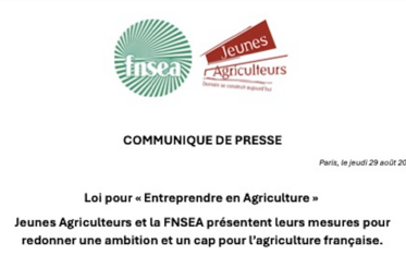 Jeudi 29 août, à la suite de la conférence de presse de rentrée de FNSEA/JA, les syndicats présentent leurs…