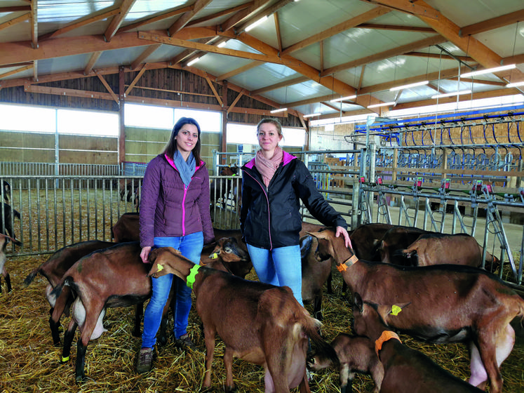 Lola Jouan et Amandine André élèvent actuellement 80 chèvres en production, six boucs et une quarantaine de chevrettes en race alpine chamoisée. « Notre objectif est de monter à 120 ou 130 chèvres d'ici à deux ans pour atteindre notre équilibre. » Le cahier des charges de l'AOP Selles-sur-Cher impose aux agriculteurs d'avoir au moins 85 % des aliments issus de la zone d'appellation. « Mais nous, nous sommes à bien plus que cela, car c'est mon père qui nous fournit les céréales. Nous achetons de la luzerne sur pied à des voisins et nous cultivons 10 hectares de prairies pour faire du foin et de l'enrubannage », précise Lola Jouan.