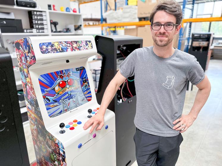 En effet, le jeune homme a installé à Auneau (Eure-et-Loir) son entreprise Flex Arcade, où il fabrique des bornes d'arcade qui n'ont rien à envier à ses aînées. « Je ne fais que réinventer quelque chose qui existait déjà », s'excuse-t-il presque.