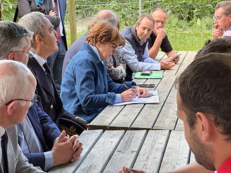 Elle préside ensuite une table ronde autour de laquelle ont pris place les parties prenantes du PAT de la collectivité territoriale et du marché alimentaire mis en place par le Département et la Région pour favoriser l'approvisionnement en produits locaux des cantines des collèges et des lycées. C'est l'occasion pour le président de la Chambre, Yohann Serreau, de rappeler que 10 % des exploitations euréliennes alimentent les circuits courts : « Nous pouvons avoir toute la semaine des repas diversifiés dans les cantines ».