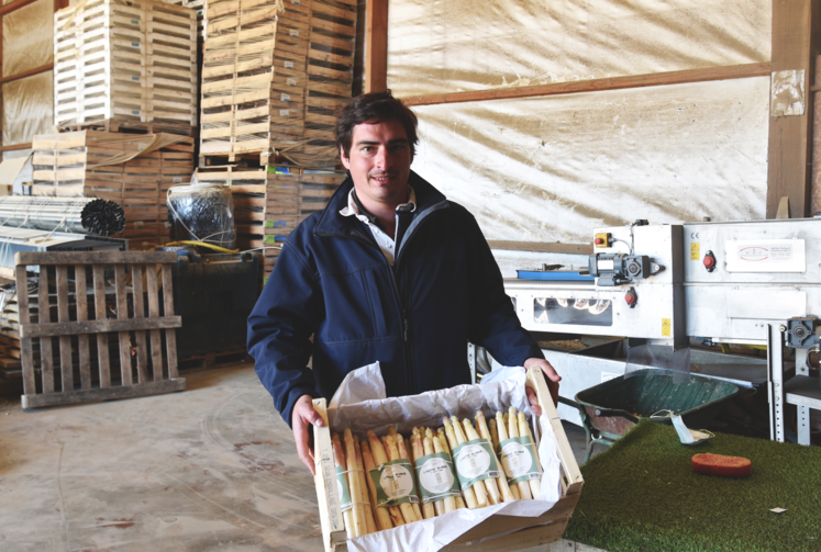 Charles Lemarié a repris en 2014 la production d’asperges initiée par son père sur l’exploitation de polyculture, en parallèle de la Cueillette de la grange, à Coubert (Seine-et-Marne).