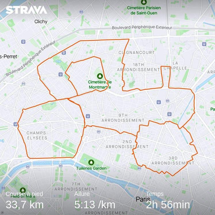 Petit-fils d’agriculteurs, Baptiste Létocart a couru dimanche 28 janvier environ 35 km dans Paris pour « essayer de sensibiliser » un maximum de personnes sur les problèmes rencontrés par les agriculteurs. Leur apportant tout son soutien, il a « dessiné » en courant , grâce au suivi GPS via l'application bien connue des sportifs Strava, un tracteur complet : capot, roues, cabine.