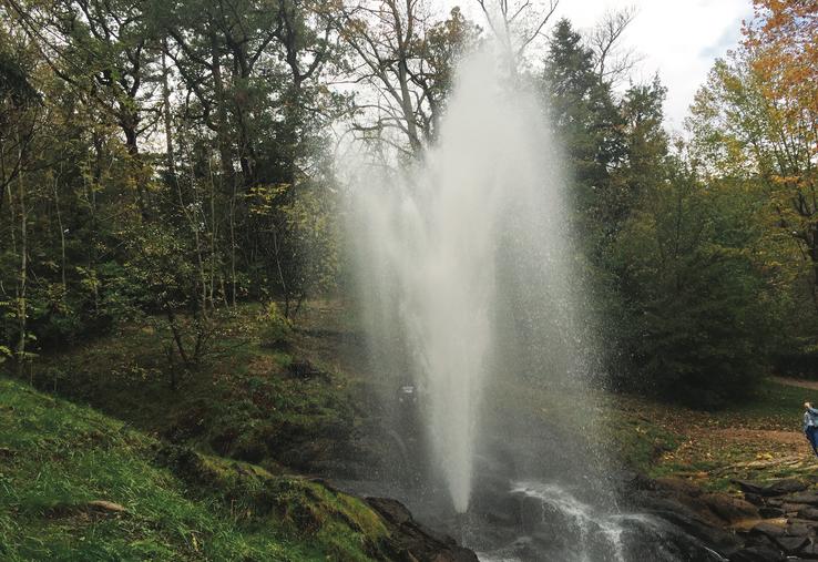 Au pied de la montagne noire, la gerbe de Saint-Ferréol, en aval du lac et du barrage éponyme, jaillit dans…