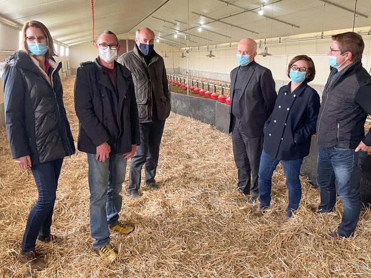 Les élus du Pays de Dreux (Eure-et-Loir) ont visité, le 8 avril, l'exploitation de Benjamin Challes, qui produit des volailles Label rouge à Serazereux.