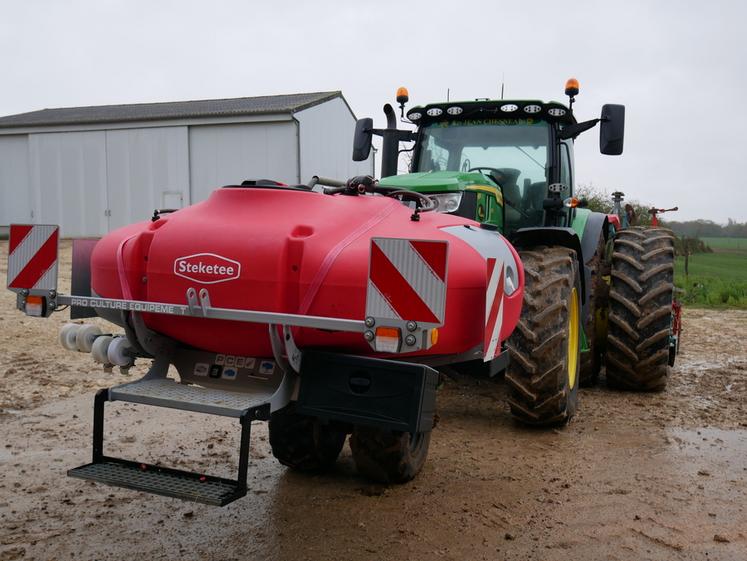 À Péronville, en Eure-et-Loir, c’est essentiellement les problématiques de ray-grass résistants qui ont amené l’équipe de la SCEA Pousse à réfléchir à des moyens de lutte efficaces à mettre en place sur les 80 hectares de maïs au sein d’une surface agricole utile de 320 hectares irrigués. Et le plan d’attaque passe par le machinisme. « Mes employeurs ont récemment investi à la fois dans une bineuseLemken (ex-Steketee), mais aussi dans une cuve frontale de 1 100 litres avec interface de guidage pour assurer une pulvérisation ciblée, explique Sébastien Hallouin, salarié agricole. Cet équipement nous a permis de développer une nouvelle technique en maïs : le binage accompagné d’une fertilisation localisée de solution azotée. L’idée est de s’attaquer aux ray-grass résistants, problématique à laquelle nous sommes confrontés depuis une quinzaine d’années et pour laquelle le labour ne suffit pas. Lors du binage, la fertilisation ciblée sur le rang permet d’éviter de nourrir les adventices de l’interrang ».