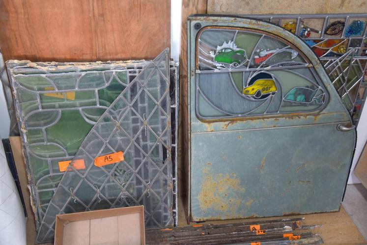 En tant qu’artiste, Élise Giraud aime surtout la recherche : « J’ai envie de changer les codes du vitrail. Sortir du conventionnel, introduire de la sculpture par exemple ». Elle détourne également des objets, à l’image de ses portes de 2 cv qu’elle sublime en rendant hommage à cette voiture mythique.