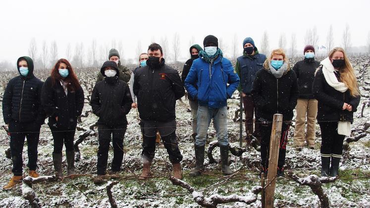 Photo : Le 10 février à Amboise, malgré la neige, les stagiaires étaient en formation dans les vignes du lycée agricole.
