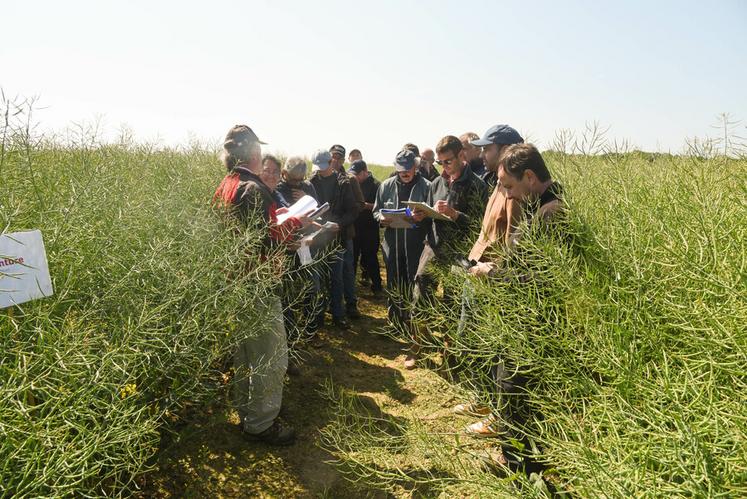 La suite de la visite est consacrée aux variétés, cinquante déclinaisons différentes sont passées en revue. Dominique Delaunay se risque à en retenir quelques-unes : « Ozzone (RGT), Helypse, Féliciano (KWS) ou Pianos ou Arianos, c'est l'une ou l'autre, et Aviron (LG) ou Kanzzas (RGT) mais elle est récente ». L'application MyVar, de Terres Inovia, peut guider les exploitants dans ces choix résolument multicritères.