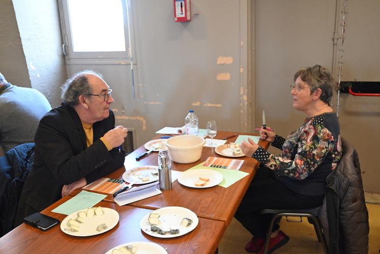Durant une matinée entière, les jurés ont pris le temps de découvrir les produits. Sur une des 23 tables de dégustation, Martine Prévault, ancienne productrice de fromages de chèvre, et Didier Thimard, consommateur aguerri, dégustent les fromages sur leur table : « C’est une grande première pour moi, assure Didier Thimard. C’est une matinée qui permet la rencontre avec les autres et la découverte de nombreux fromages différents ».