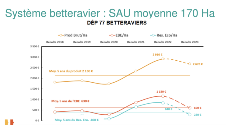 À noter que l’assolement a peu évolué en 2023 par rapport à 2022, excepté une baisse de la sole en betterave de 18 % et un redéveloppement des protéagineux.