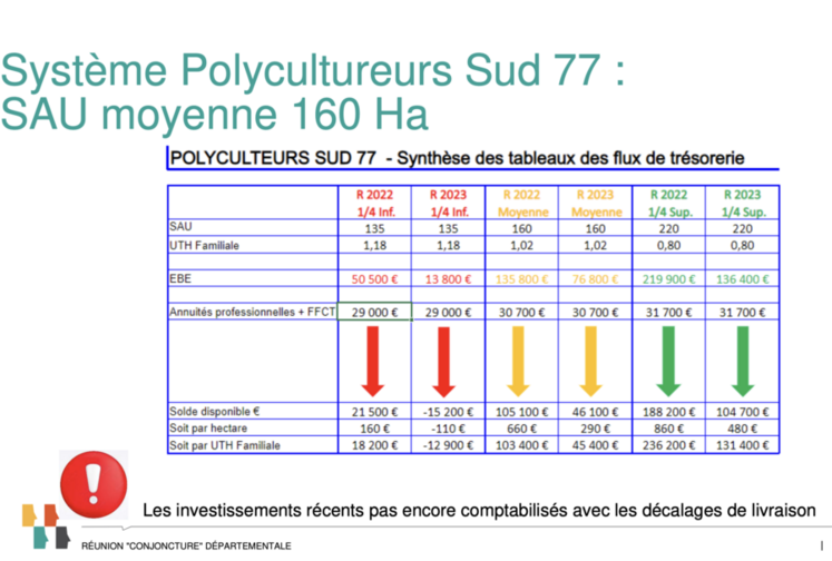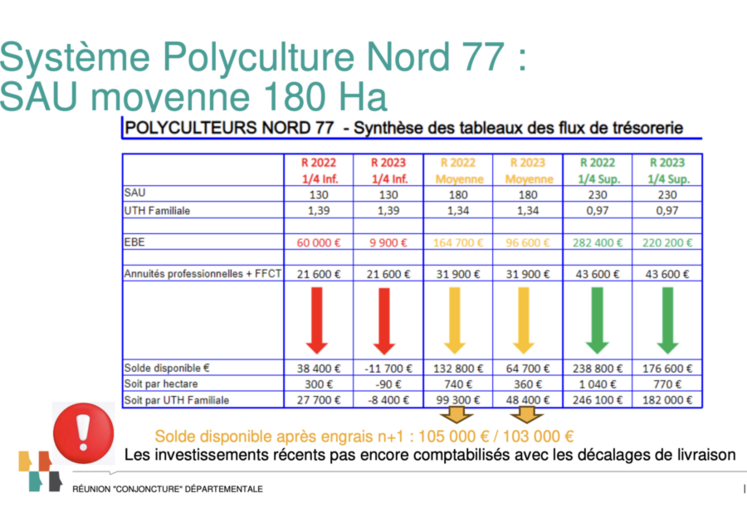 Dans ce contexte de forte volatilité des résultats d’une année sur l’autre, la principale difficulté réside dans la gestion des DEP (Déduction pour épargne de précaution) et des prélèvements obligatoires, difficulté accentuée avec l’instauration du prélèvement à la source. Le décalage est encore plus marqué pour les exploitations clôturant au 30 juin. Ainsi, les bons résultats de la récolte 2022 vont nécessiter de la trésorerie jusqu’en août 2025. Il en est de même pour la MSA avec la moyenne triennale (70 % des exploitations franciliennes).