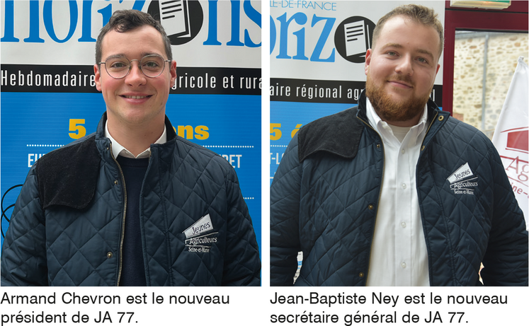 Respectivement président et secrétaire général de Jeunes agriculteurs de Seine-et-Marne depuis le 19 février, Armand Chevron et Jean-Baptiste Ney répondent à nos questions.