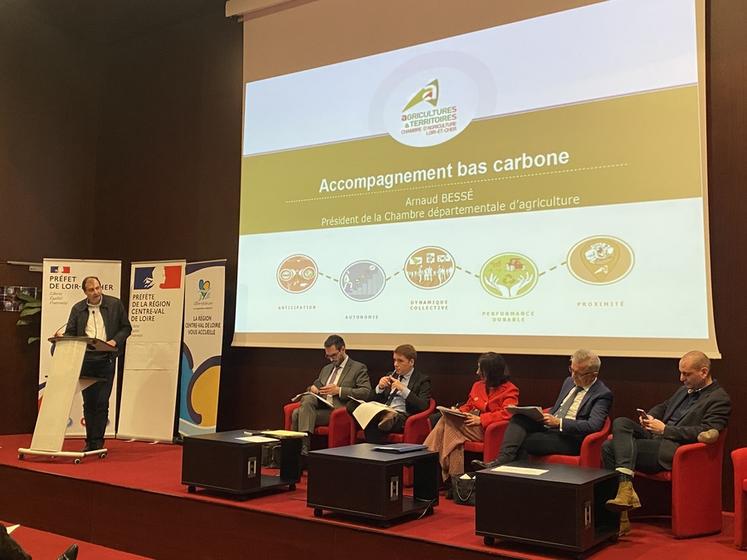 Plusieurs acteurs de différents secteurs d’activités sont intervenus pour présenter les projets déjà mis en place. Arnaud Bessé, président de la chambre d’Agriculture de Loir-et-Cher, a insisté sur l’accompagnement bas-carbone : « Nous, les chambres d’Agriculture départementales et régionale, pensons que l’agriculture est une solution pour lutter contre le réchauffement climatique ». 130 diagnostics et plans d’action pour améliorer l’empreinte carbone de l’exploitation agricole ont été réalisés depuis 2022 au sein de la Chambre de Loir-et-Cher. Cette démarche permet d’accompagner les agriculteurs vers la réduction des émissions de gaz à effet de serre, voire de s’engager pour certains d’entre eux jusqu’à la monétisation de leurs crédits carbone via le Label bas-carbone.