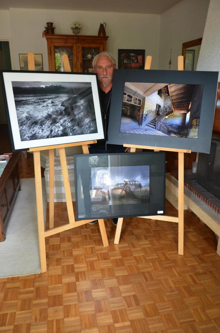Face à son objectif, des cimetières de bateaux, des usines désaffectées, des tracteurs déposés dans une casse ou encore l’érosion des côtes bretonnes ou basques... parfois en noir et blanc, sinon en couleur mais toujours avec « un jeu de lumière supplémentaire » : « Cela ne m’intéresse pas de photographier un bateau tel qu’il est, ça, tout le monde peut le faire. J’ajoute une lumière artificielle pour mettre mon sujet en valeur, le sublimer et qu’il devienne un de mes modèles ».