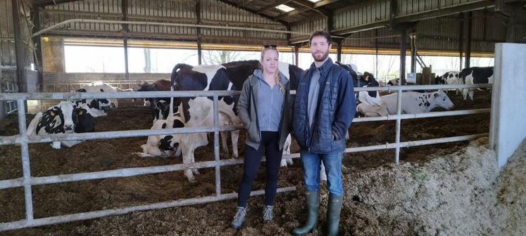 Installés il y a cinq ans à Bohain-en-Vermandois (Aisne) sur une centaine d’hectares, Clara et Mathieu Collet avaient opté à leurs débuts pour une litière paillée pour leurs 75 vaches laitières. « Nous n’étions pas autonomes en paille, donc nous avons réfléchi à un autre système à mettre en place sur notre exploitation », précisent-ils. Les logettes, trop onéreuses, ont vite été oubliées. « Nous nous sommes penchés sur la litière malaxée. Après avoir essayé le miscanthus, les plaquettes de bois et même le mélange des deux, nous nous sommes arrêtés sur les anas de lin avec une litière de 30 cm », explique Clara Collet, soulignant toutefois que la litière en place est malaxée deux fois par jour, environ dix minutes le matin et le soir. Ce choix s’est fait après avoir discuté avec un éleveur canadien qui a partagé son expérience.