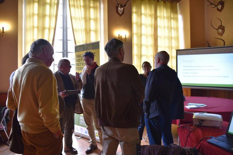 L’après-midi s’est poursuivie en temps libre autour de quatre ateliers (un par logiciel) afin de permettre aux propriétaires forestiers de rencontrer les intervenants, d’avoir plus de précisions sur les outils afin de trouver celui qui correspond le mieux à leurs besoins.