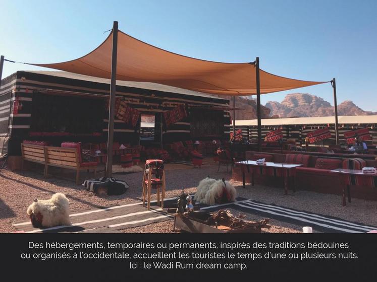 Plusieurs campements inspirés du mode de vie bédouin sont disséminés dans les étendues sauvages pour loger les touristes.