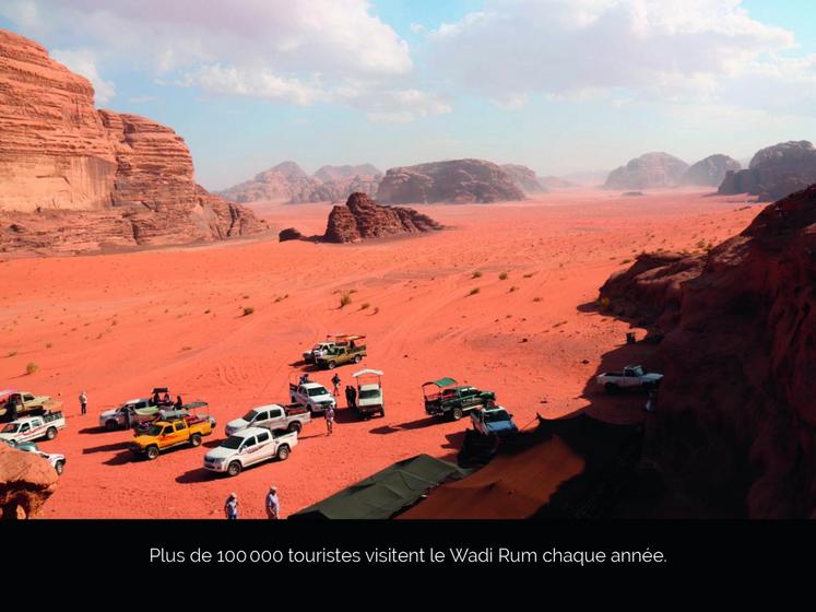 La vallée est habitée par des bédouins aujourd’hui sédentarisés, qui s’impliquent dans la protection du désert et dans des activités liées au tourisme. Pas moins de 100 000 visiteurs parcourent le Wadi Rum chaque année, à pied, à dos de dromadaire, en 4x4, en quad, voire en ballon. On peut aussi pratiquer l’escalade, randonner et même courir le marathon.