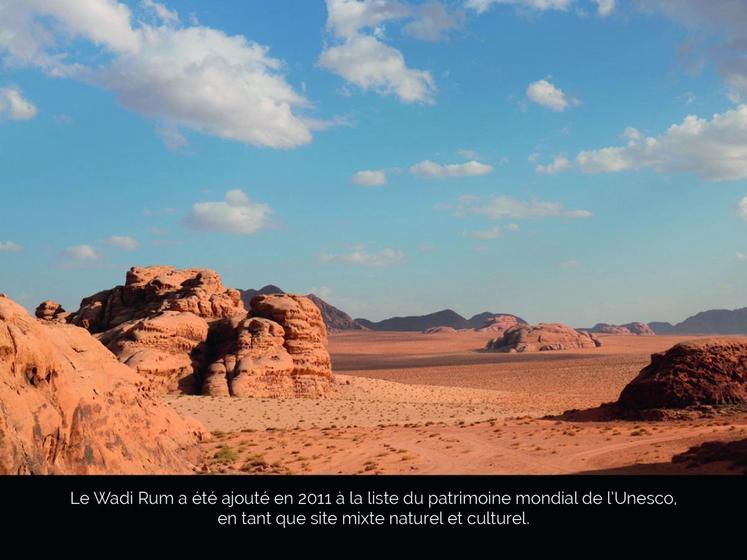 Ces paysages somptueux ont accueilli le tournage de plusieurs films, dont Lawrence d’Arabie (David Lean, 1962), Seul sur Mars (Ridley Scott, 2015) et Aladdin (Guy Ritchie, 2019).