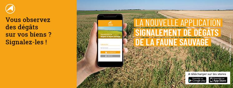 Développée à l’origine par la chambre d’Agriculture de Haute-Vienne, cette application est accessible sur les principalesplateformes de téléchargement iOS et Android. Elle permet de géolocaliser facilement le lieu où les dégâts sont constatés. Les photos pourront être transmises très facilement. Ces divers signalements permettront également d’enrichir une base de données scientifiques relative à la pression de la faune sauvage sur les cultures et les élevages et serviront de base aux différentes mesures à mettre en place pour en minimiser l’impact.