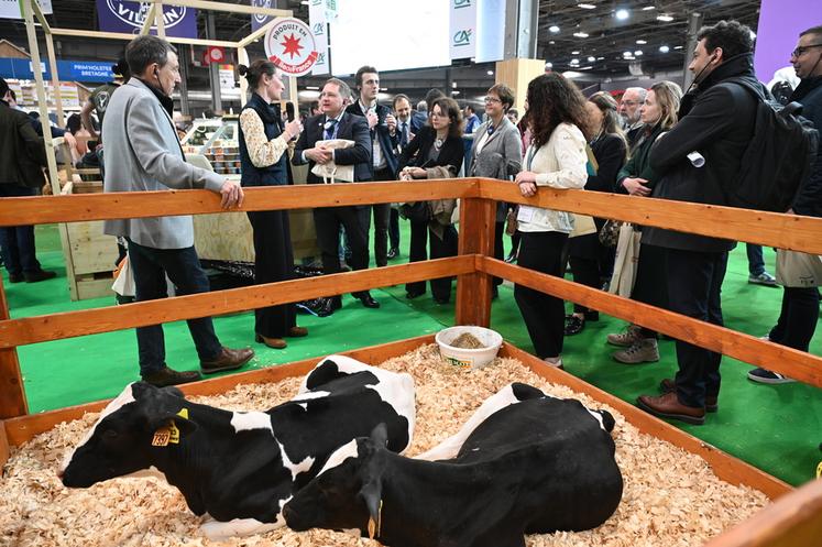 À Paris, lundi 24 février. La délégation de préfets franciliens a été accueillie par les élus franciliens au hall 1 consacré à l’élevage.