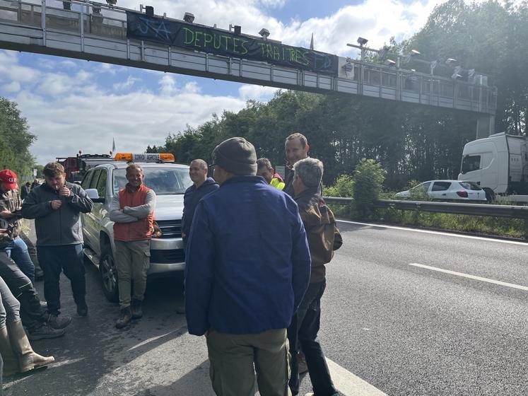 Ce vendredi 23 mai au matin, les agriculteurs du syndicat local de Saint-Arnoult/Dourdan, accompagnés des JA de Saint-Arnoult-en-Yvelines, ont notamment occupé les entrées d'autoroute à Allainville et à Ablis dans les Yvelines. Ils étaient une vingtaine, avec une dizaine de tracteurs, et ont déposé des objets tels que des palettes et des pneus pour bloquer une partie des voies d'accès. Plusieurs bâches ont également été installées avec des slogans comme « Respectez vos promesses », « Promesses dans le vent, paysans sur les dents », « Libérez la production », « Bayrou, sors ton 49-3 », « Stop écolo bobo du bureau » ou encore « Des députés, pas des langues de pute ». David Vallée, président du syndicat local, juge « n'importe quoi » les 3 438 amendements déposés à l'Assemblée nationale. « C'est juste pour nous emmerder », ajoute-t-il avant de motiver ses troupes à poursuivre la mobilisation lundi 25 mai. « Je n'espère pas, mais s'il le faut, nous durcirons le mouvement durant la semaine », évoque-t-il.