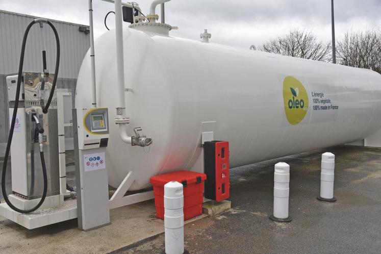 Photo : La nouvelle cuve permettant aux camions de faire le plein en Oléo100 fabriqué à l’usine du Mériot.