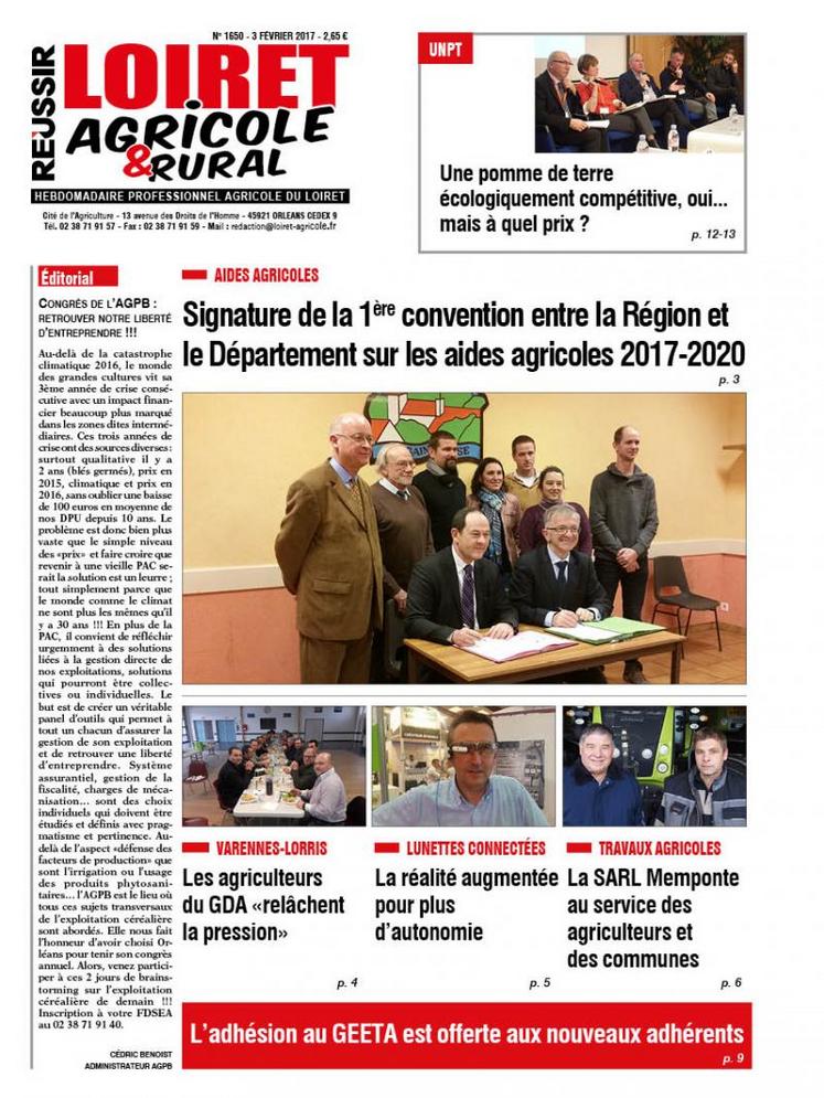 page 3 : Signature de la 1ère convention entre la Région et le Département sur les aides agricoles 2017-2020