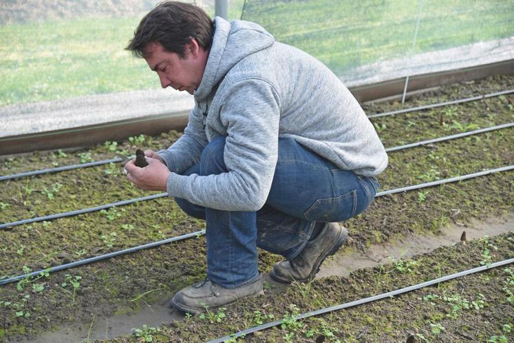 « Tout au long de l’hiver, la culture est contrôlée. La récolte intervient au début du printemps, de mi-mars à mi-avril », note Philippe Girardot, dont la serre s’étend sur 420 m2.
