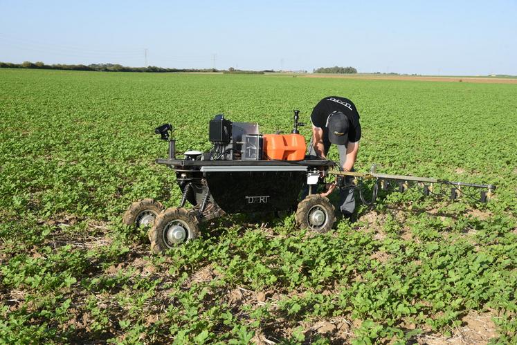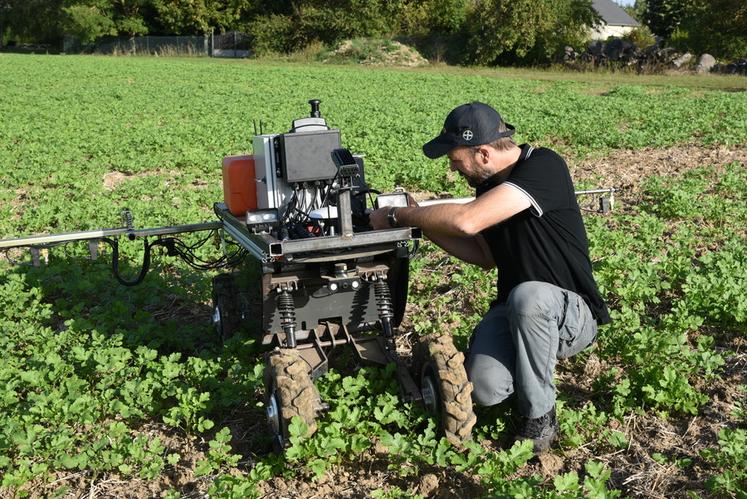 Aujourd'hui, la partie effarouchage du robot est fonctionnelle, ainsi que l'épandage de couvert. Pour ce qui est de l'épandage des trichogrammes, il reste encore quelques modifications à apporter. Et l'agriculteur Géo Trouvetou va encore plus loin puisqu'il travaille désormais à installer un système de désherbage ultra-localisé sur son robot de 100 kg. « La charge étant beaucoup plus lourde avec cette nouvelle fonctionnalité, j'attends de voir la fiabilité », résume-t-il. Une fois l'outil testé et approuvé, Rémi Gaget aimerait le commercialiser d'ici la fin du printemps prochain. « Même si la commercialisation du robot induit la création d'une nouvelle entreprise, je tiens à ce que mon exploitation reste ma priorité », conclut-il. Pour le moment, entre récoltes et semis, l'exploitant cherche à créer une seconde version, plus large et plus haute, de son robot afin qu'il passe aisément dans les rangs de betteraves.