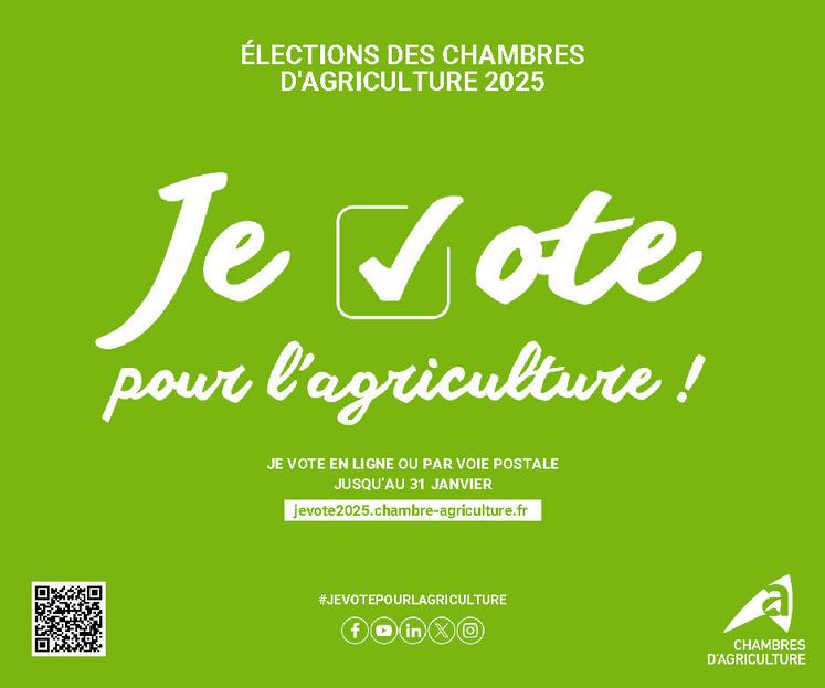 Vous avez jusqu'au 31 janvier pour voter par correspondance ou en ligne à l'aide des codes reçus. La liste FRSEA-JA Île-de-France rappelle l'importance de voter pour son projet.