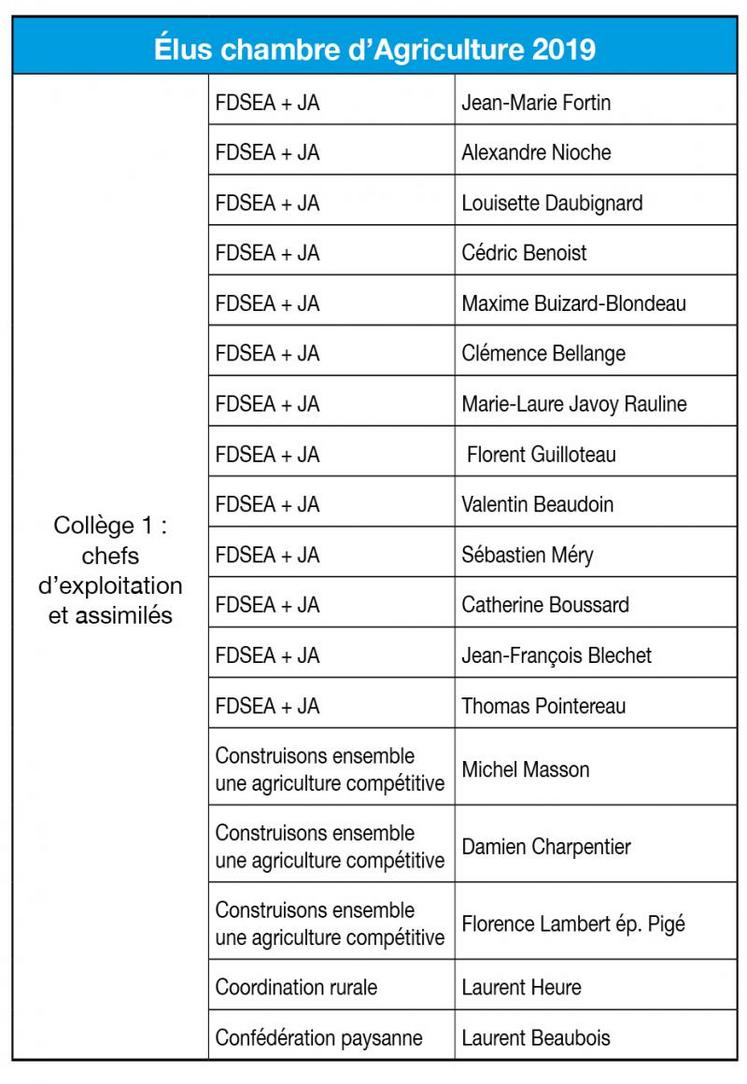Dans les autres collèges, la liste portée par le Syndicat de la propriété privée rurale a obtenu 85,57 % des voix. Pour sa part, la liste du collège des anciens exploitants de la FDSEA a totalisé plus de 72 % des suffrages.