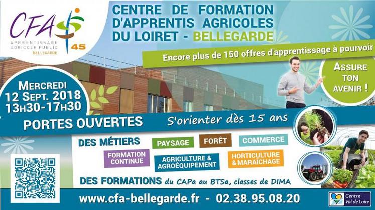 Le CFA Agricole de Bellegarde ouvre ses portes exceptionnellement le mercredi 12 septembre de 13h30 à 17h30. Cet après-midi aura pour but d'informer et orienter les jeunes vers l'apprentissage et des métiers qui recrutent.