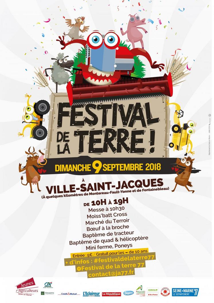 La trente-et-unième édition du Festival de la terre, organisé par de jeunes agriculteurs et agricultrices de Seine-et- Marne, aura lieu le dimanche 9 septembre à Ville-Saint-Jacques.