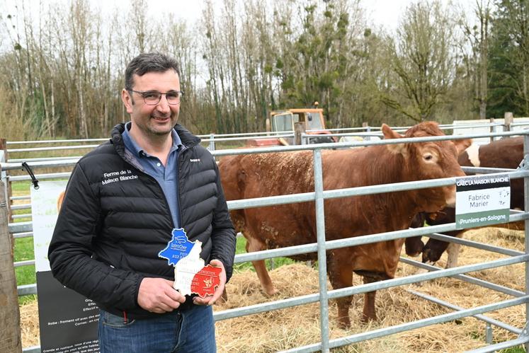 Une dizaine de bovins allaitants et cinq éleveurs étaient présents pour la troisième édition de la foire aux bestiaux organisée par la Société départementale d’agriculture de Loir-et-Cher (SDA 41) à Pruniers-en-Sologne. Cette foire, qui s'est tenue lundi 18 mars, est l’occasion pour éleveurs comme acheteurs de revenir aux traditions avec des négociations qui se font sur place. C’est un pacte gagnant-gagnant avec une plaque, signe de reconnaissance d’une viande locale pour le boucher et un prix parfois plus élevé pour l’éleveur. « Il faut conserver cette tradition qui permet de favoriser la communication entre les acheteurs et les éleveurs. Les acheteurs sont friands de bêtes à plaques, c'est un vrai plus pour les consommateurs. Au niveau des éleveurs, il y a un petit supplément d’en moyenne 50 centimes par kilo lors de la vente », affirme Frédéric Jaffré, éleveur bovin allaitant à La Marolle-en-Sologne et à l’initiative du retour de cette foire aux bestiaux.