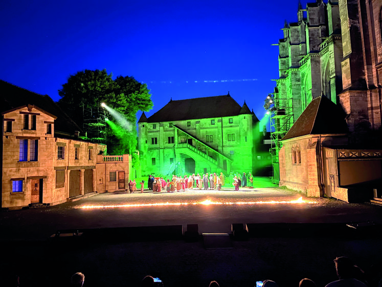 Ce spectacle, qui célèbre ses 40 ans, bénéficie d’un décor exceptionnel : la cour fermée — une des rares en France — de la cité épiscopale composée notamment de la cathédrale Saint-Étienne, du palais épiscopal et de la chapelle ou vieux chapitre. L’un de ses illustres habitants n’est autre que l’écrivain et évêque Jacques-Bénigne Bossuet aussi appelé l’Aigle de Meaux.