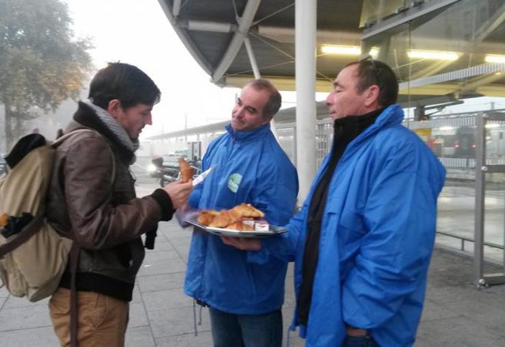 Opération de communication de la FDSEA 45 à la gare d’Orléans, pour dire Non à la distorsion de concurrence !