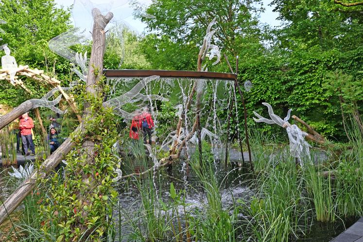 « C’était l’année où il fallait participer, c’est un thème qui me parle », confie l’un des concepteurs à des visiteurs curieux. Difficile de désigner un jardin plus marquant qu’un autre, mais « Flora et Zéphyr », inspiré du livre Ce que disent les fleurs de George Sand, ne laisse personne indifférent.