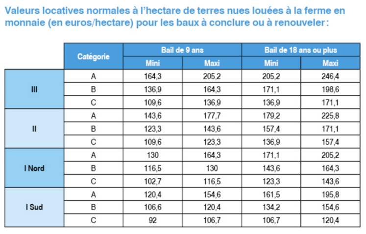 De plus, les biens ruraux loués à ferme sont classés par ordre de valeur dans chaque zone en :