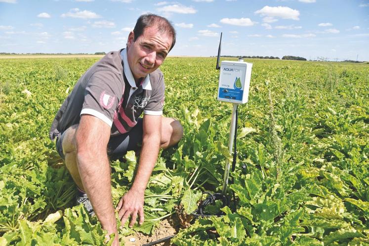 Il utilise les sondes capacitives Agralis pour la seconde année pour les cultures maraîchères et les teste cette année dans deux parcelles de betteraves. Ces sondes permettent de suivre en temps réel l’humidité d’un sol en fonction de la profondeur.
