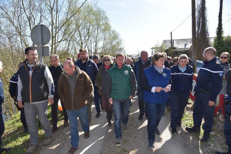 Quatre-vingts agriculteurs venus des départements de Seine-et-Marne, de l’Aube, de la Marne et de l’Yonne se sont retrouvés au barrage de La Grande-Bosse à Bazoches-les-Bray vendredi 6 avril, répondant ainsi à l’appel à mobilisation lancé par leurs FDSEA respectives pour exprimer leur ras-le-bol face aux inondations à répétition depuis cinq ans alors que la prise en charge par l’État de ces intempéries ne bouge pas.